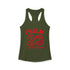A high-quality print of this slim fit tank-top will turn heads. Bystanders won't be disappointed - the racerback cut looks good on any woman's shoulders.